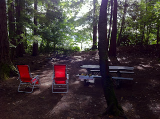 We left Raymond midday for another zig of our zigging/zagging trail. Back east on tiny back roads with Katie Bauer's house our destination the following day. After a couple of hours in the Motorhome we're usually ready for a campground and we found a beauty! Ike Kinswa State Park...wooded with our site on Mayfield Lake. Warm, though clouds filled the sky we had a wonderful evening here.